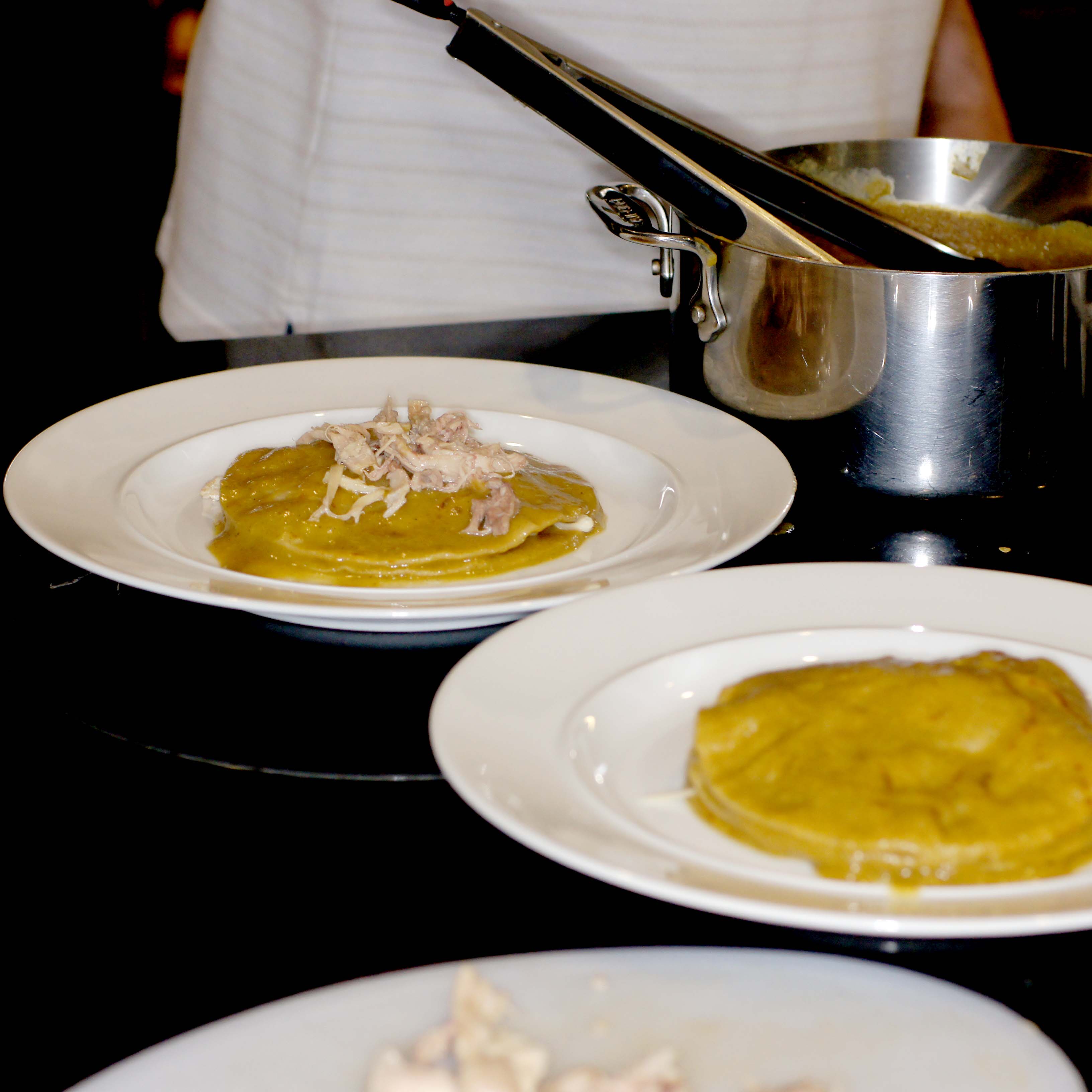 Once all of the tortillas have fried and the sauce is done, begin assembling the enchiladas by dredging the tortillas in the salsa verde and placing on a plate.