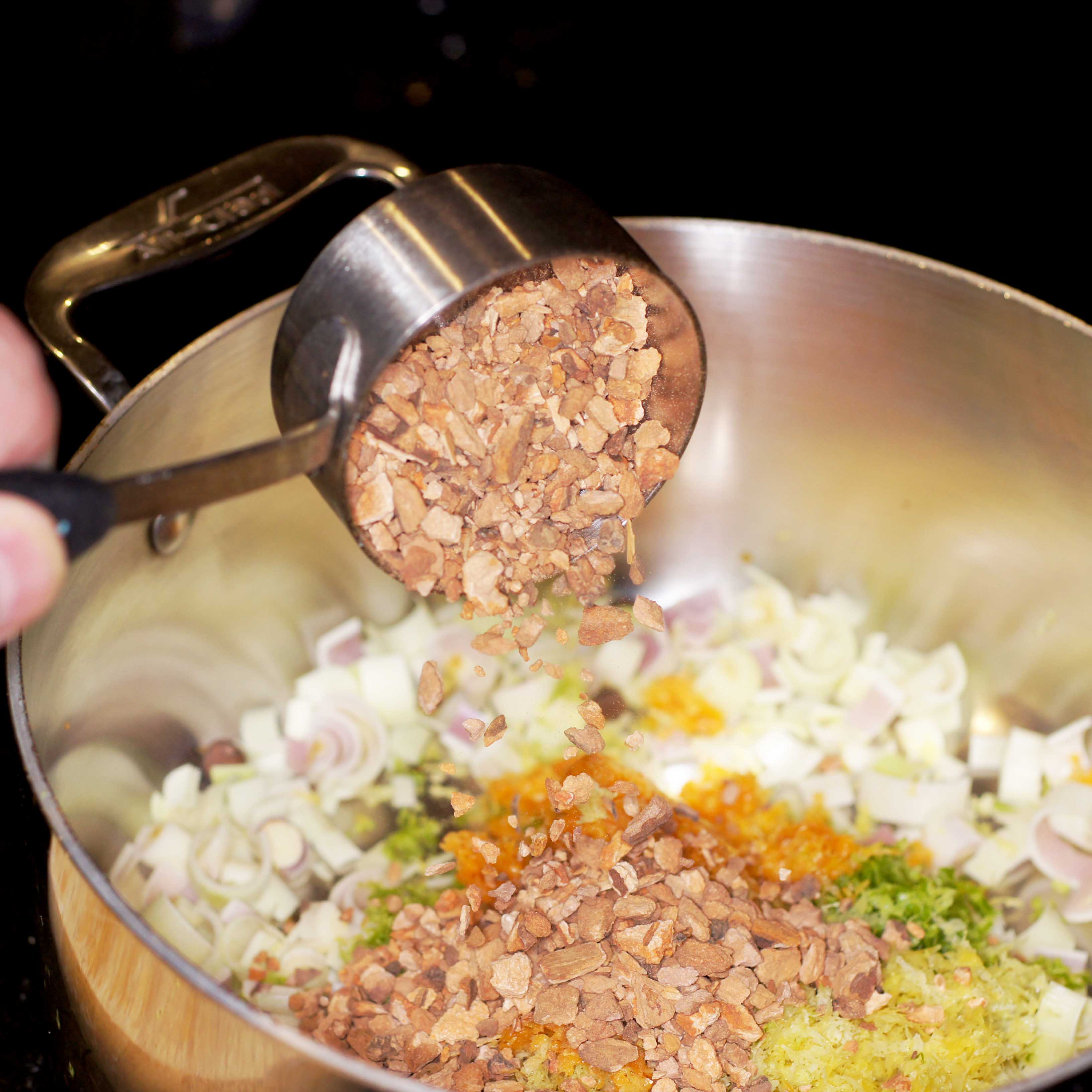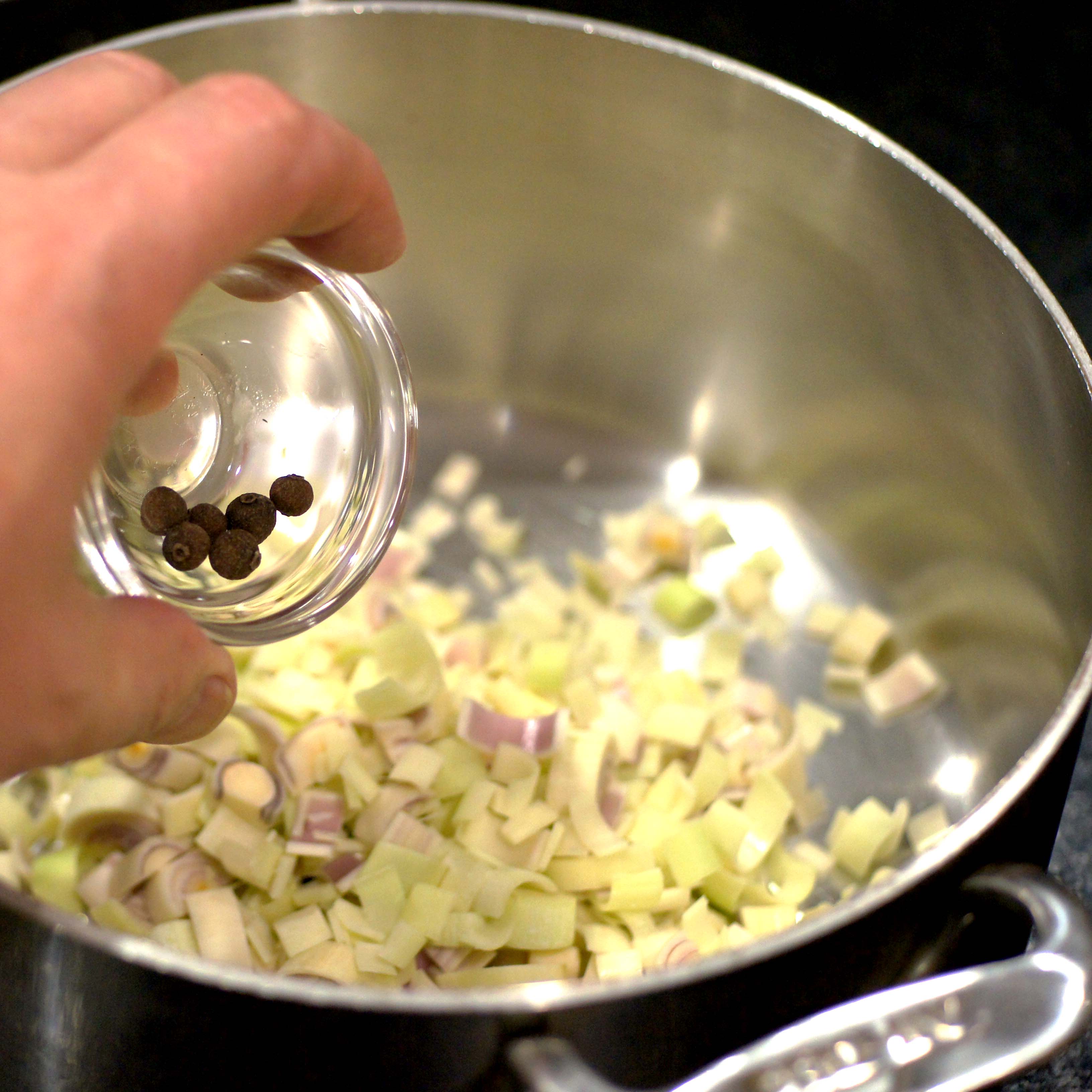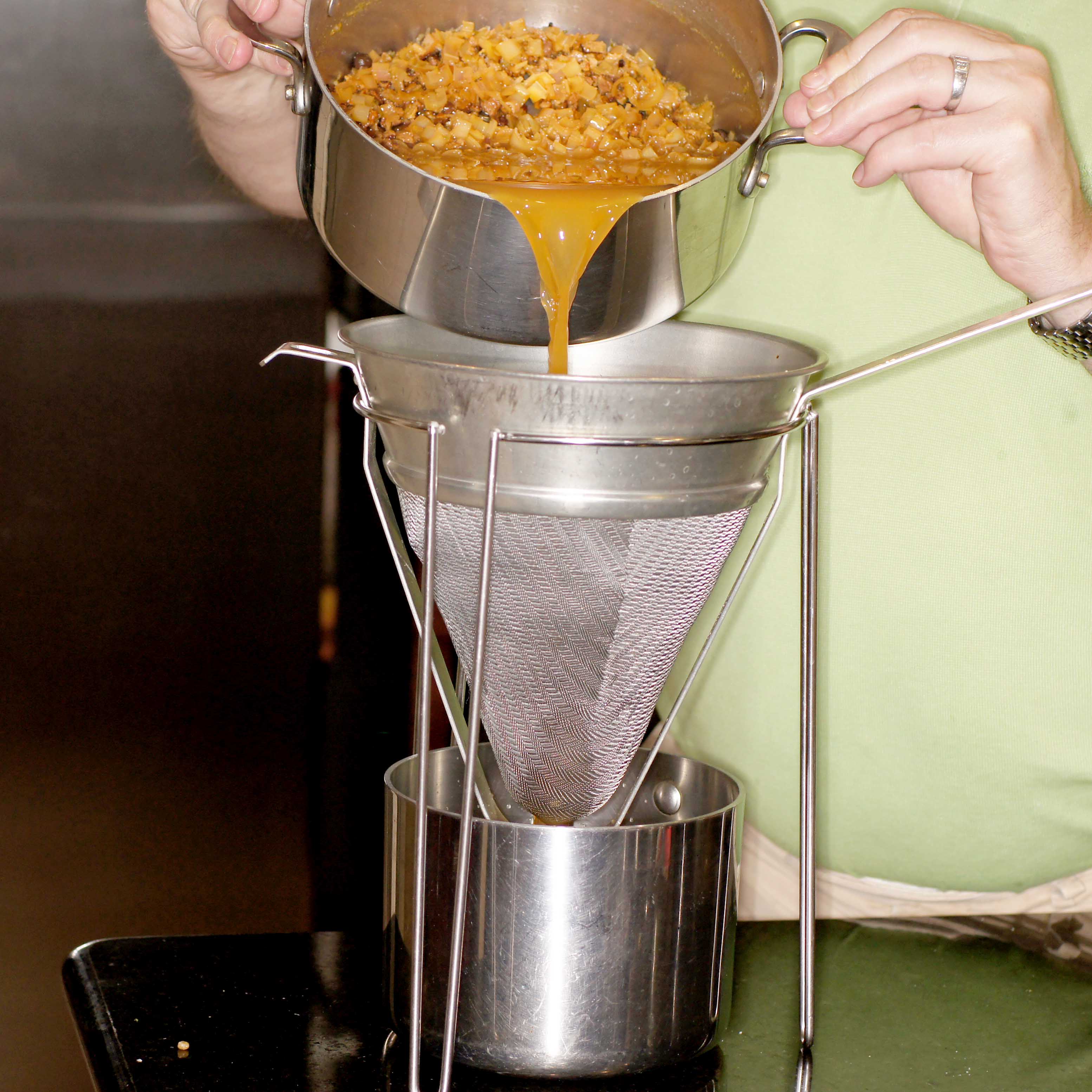 Reduce heat to low, cover and simmer for 20 minutes. Then remove from heat and allow to cool thoroughly. When cool, pour the mixture through a superfine mesh Chinoise.