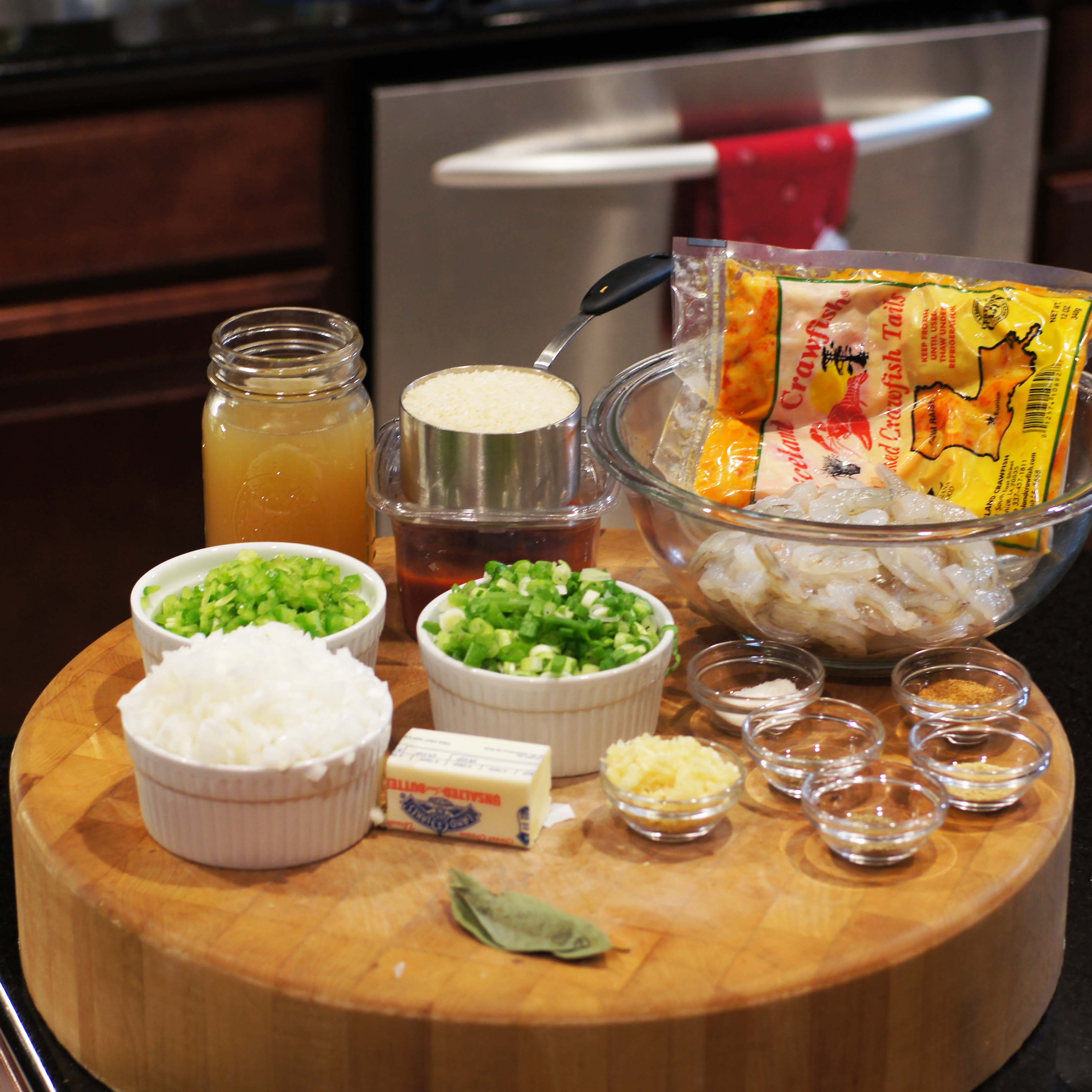 This dish is more of a creole jambalaya. Because it involves seafood as opposed to the more traditional chicken, local game and sausage, the seafood is added at the end. The result is a wonderful dish that everyone will love. The rice is incredibly flavorful and the shrimp very tasty and tender. You owe it to yourself to try this dish. Your family and guests will love you for it. It will serve 4-6 main dishes or 8 -10 appetizers. This is what we did.