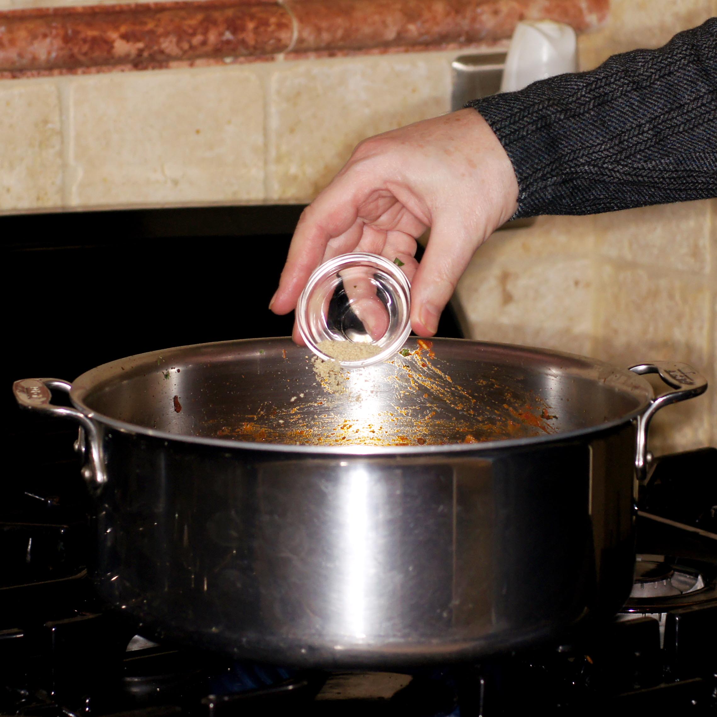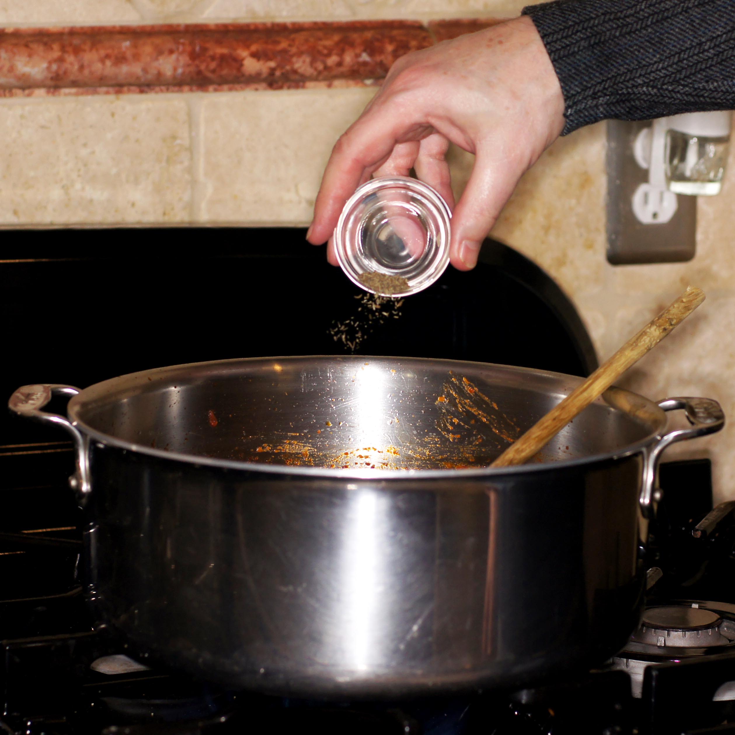 This will take roughly 8 – 10 minutes depending upon your stove. Using tomato sauce, as opposed to fresh tomatoes, and cooking it down in this fashion results in an incredible depth of flavor for your jambalaya. You will really be surprised by this cooking technique.