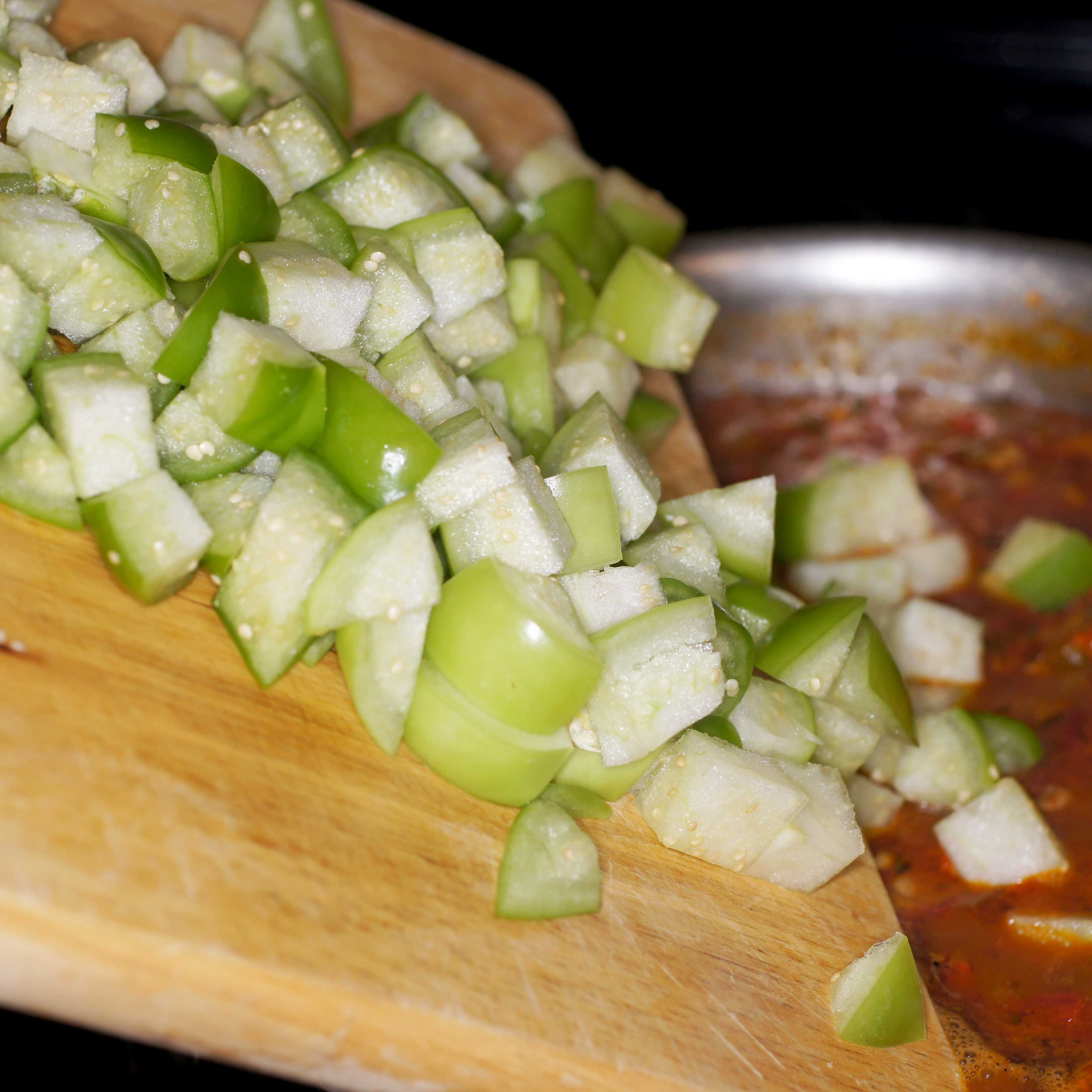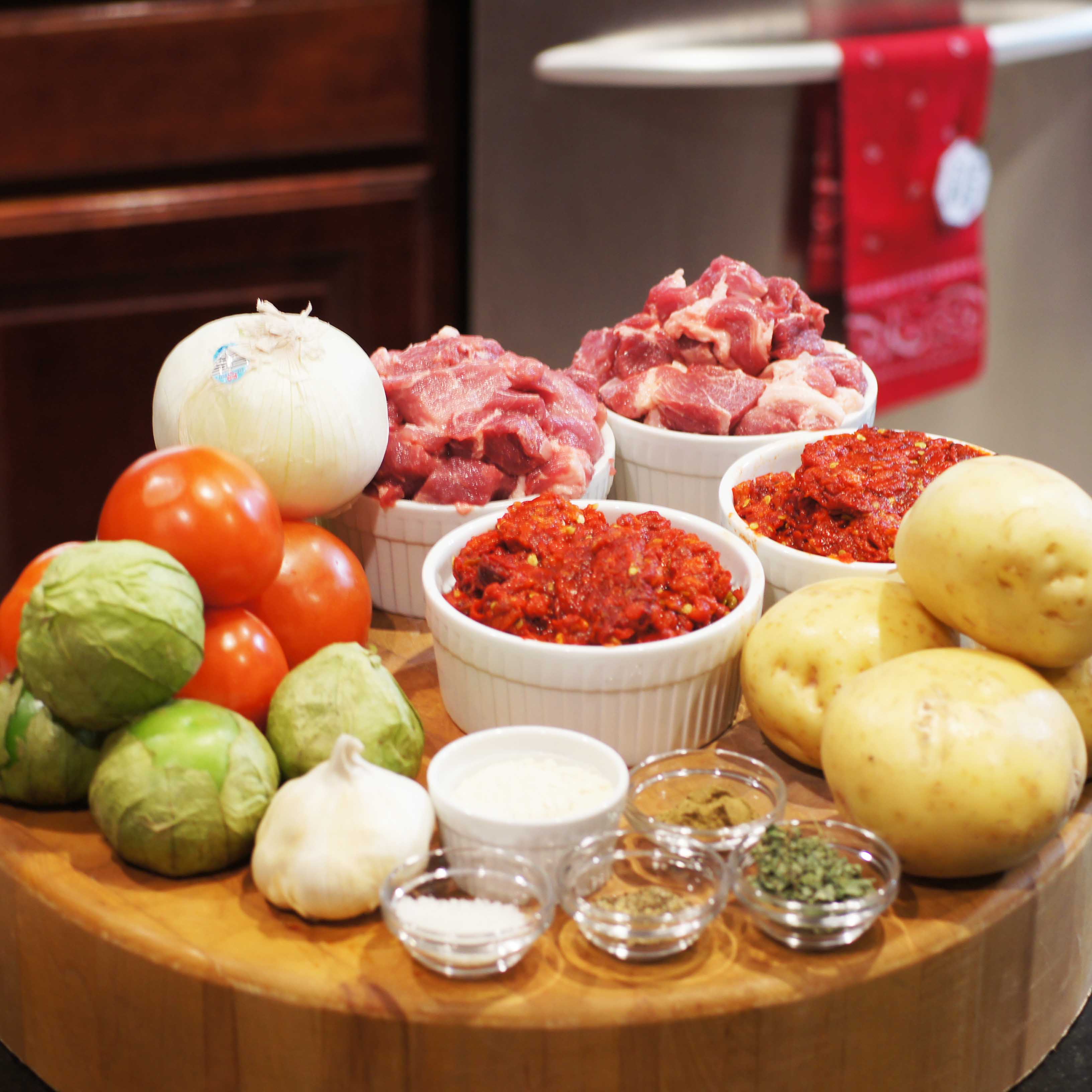 1. 😀 What can I say, Conor? This stew would be like if you took the ENTIRE bag of Sandia XXHot I gave you along with ALL of the Hot and mixed it with 4 lbs of pork, 3 lbs of potatoes, 3 lbs onions, 3 lbs tomatillos and 3 lbs tomatoes. It sounds like there would be enough volume to tame the beast but HOLY MOLY this was hot, hot, hot, hot, hot. 😮 😮 I very seldom make something we all agree is way too hot but this was it. I still have a quart that we are going to eat with Hot Dogs tonight while we finish dressing the tree.