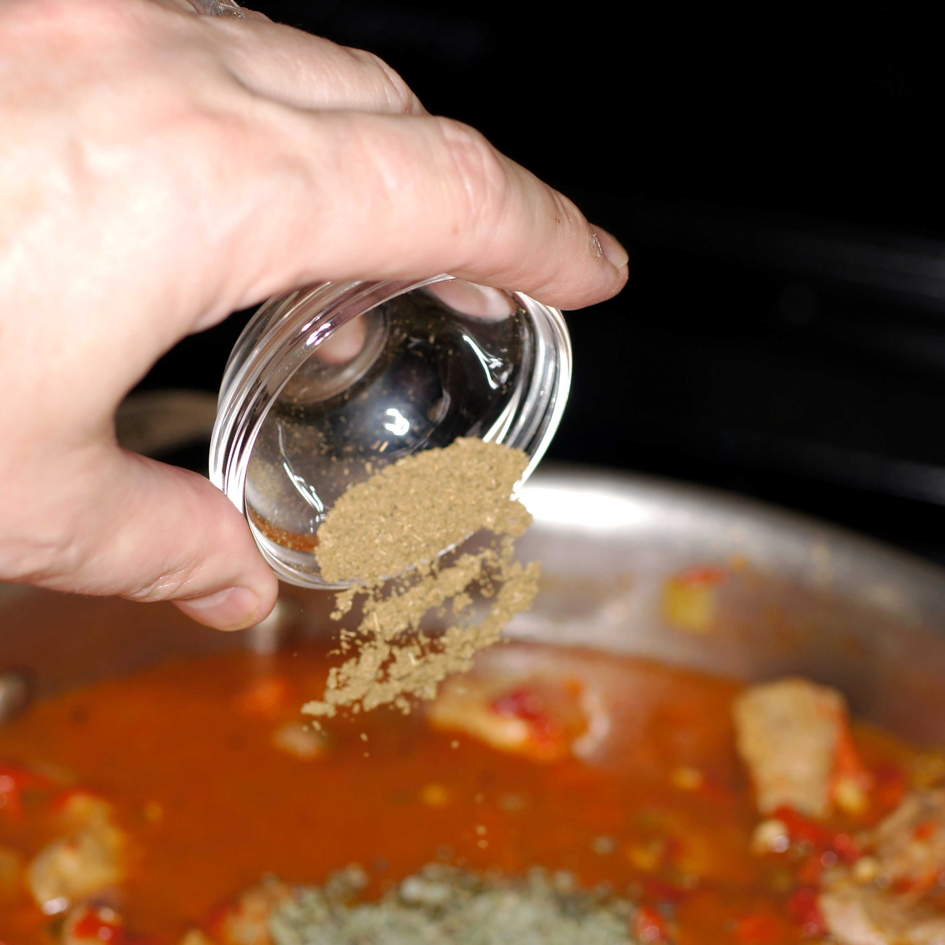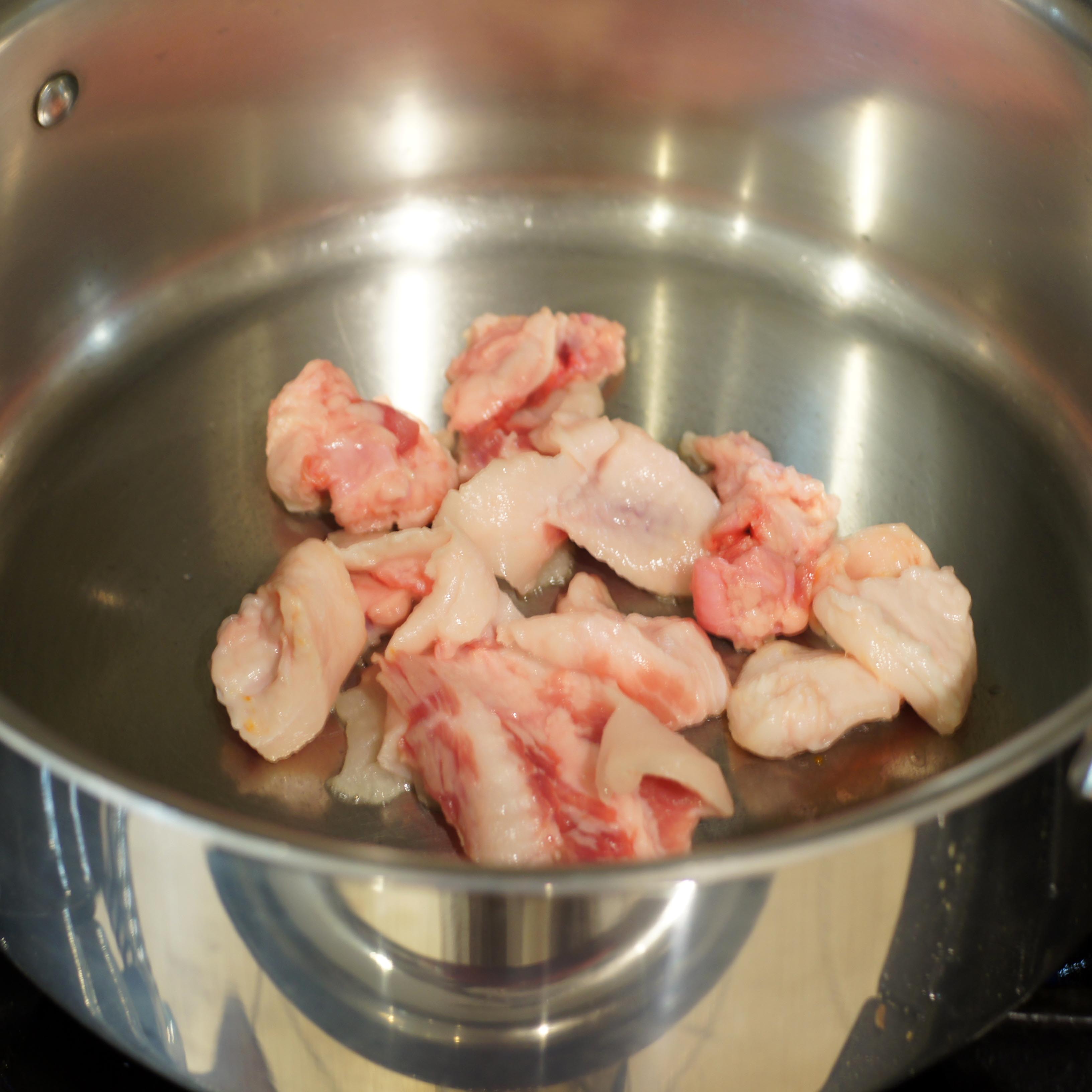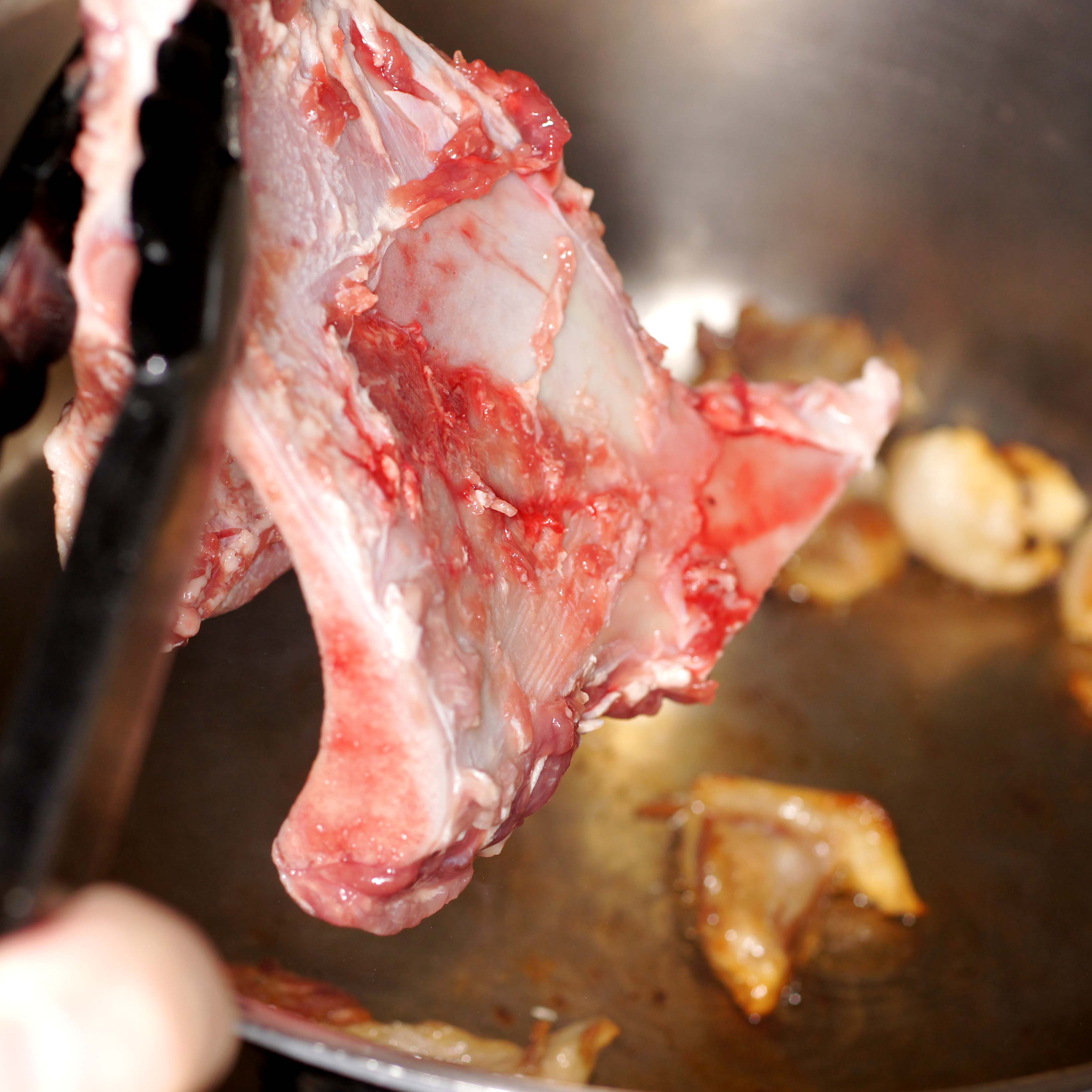 After you have rendered the fat and seared the bone, add the meat in batches and brown.