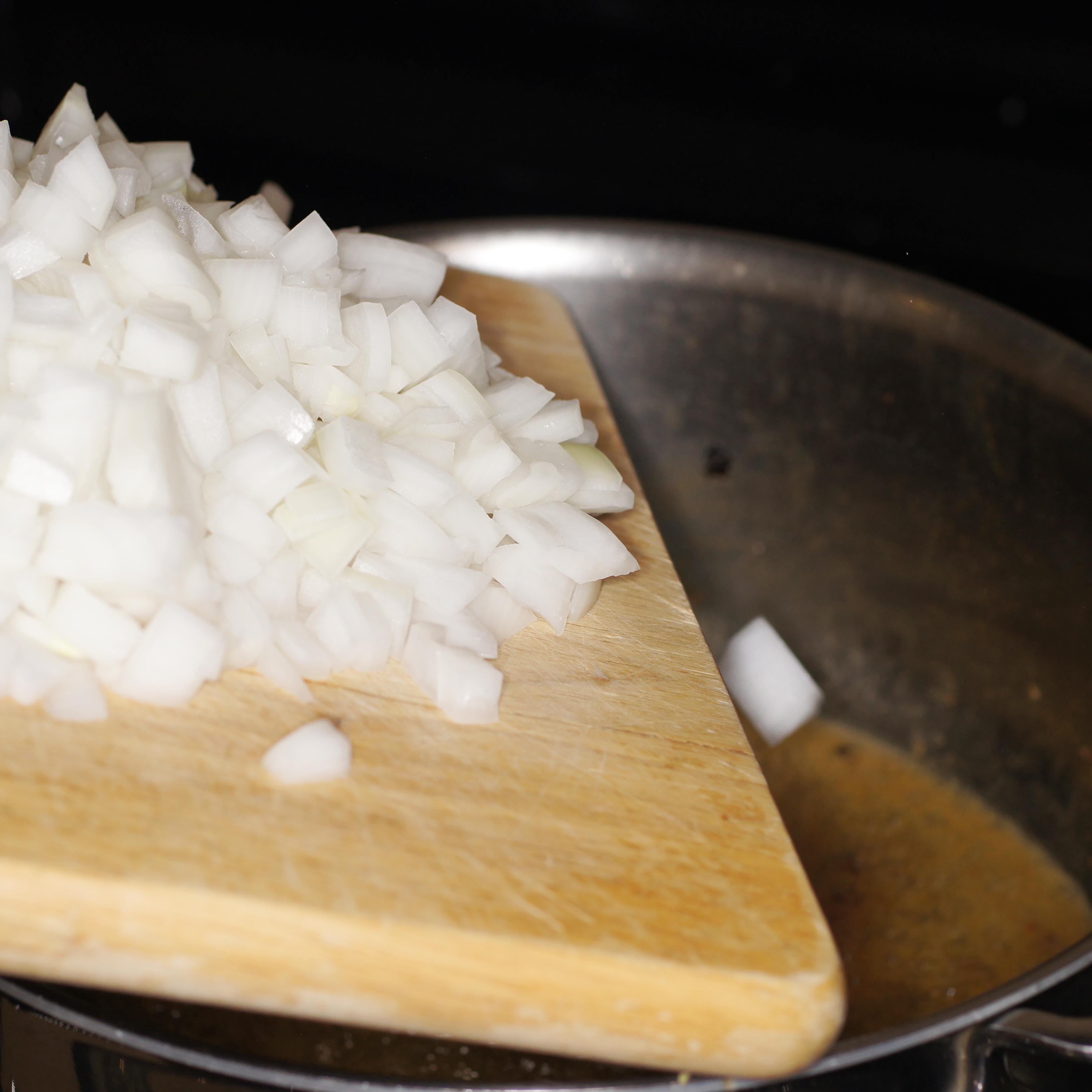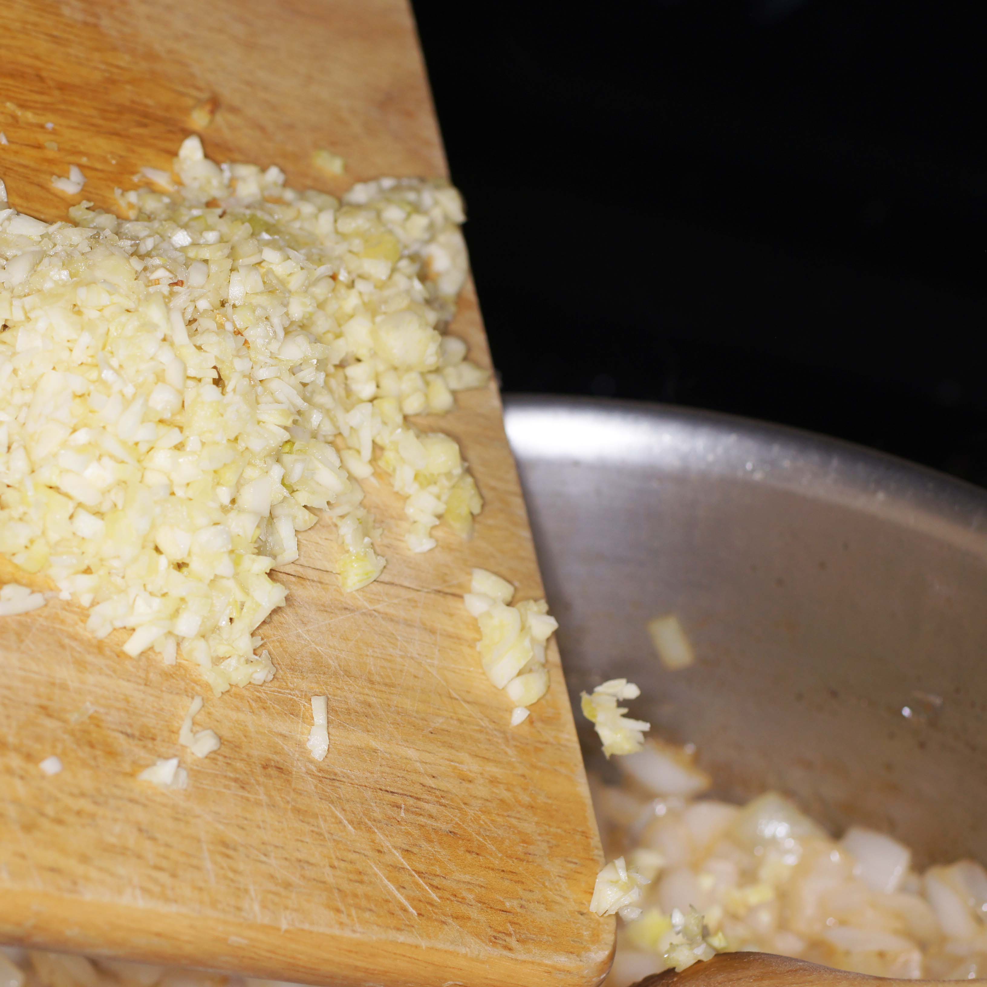 Sweat for 2 minutes or so over medium-high heat until translucent and then add garlic