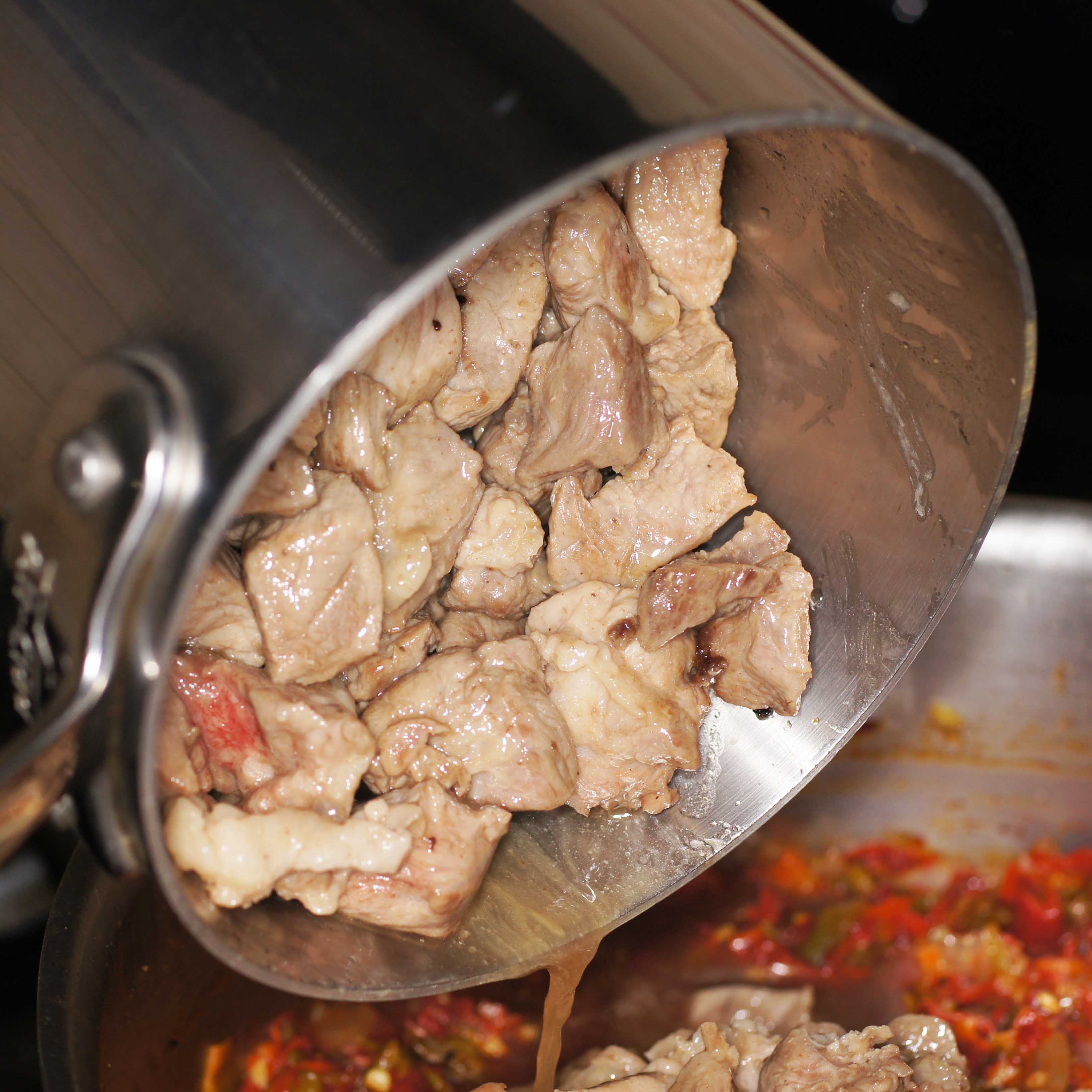 Stir and cook for 2 minutes and add the seared pork back to the pot.