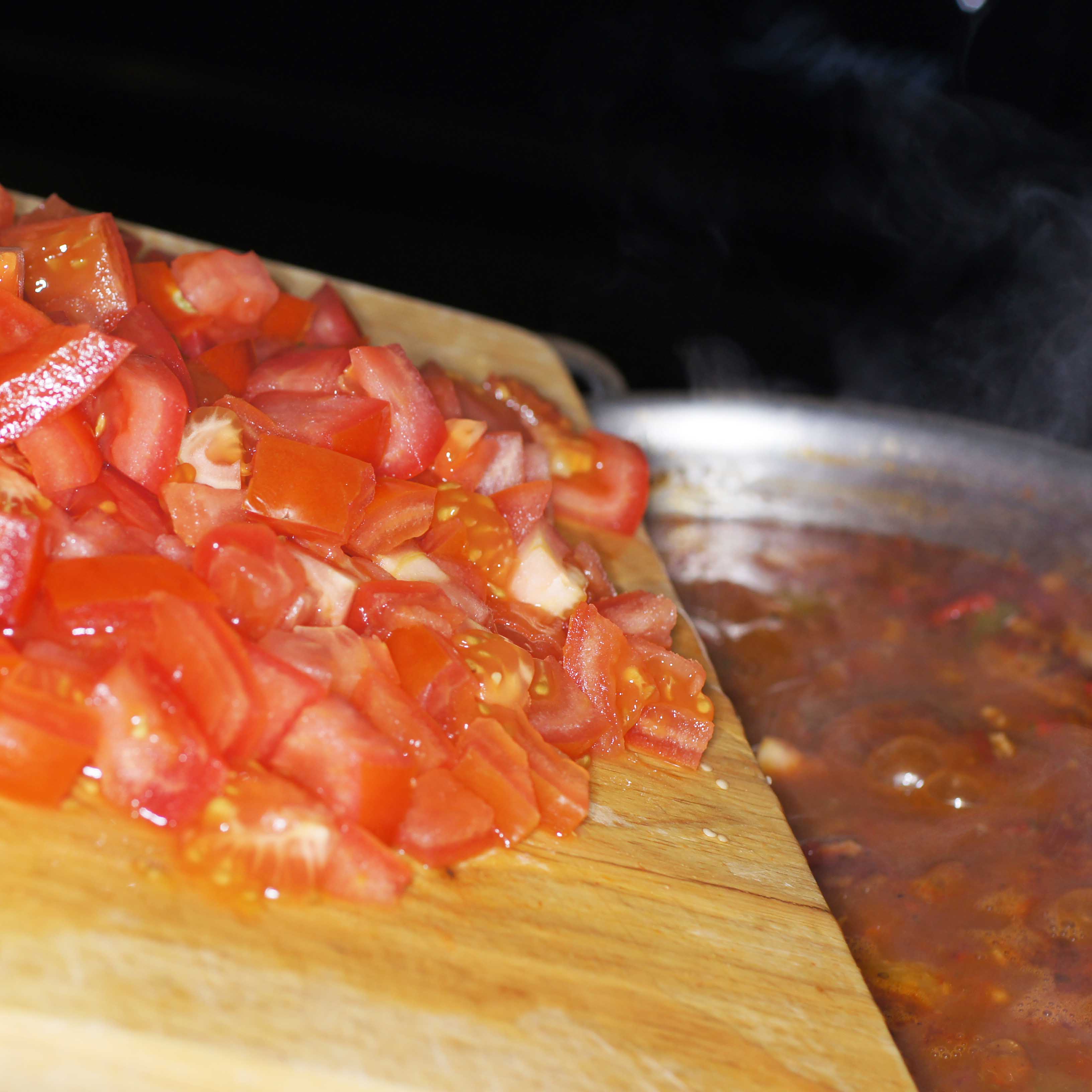 This is a very flavorful stew and is not to be confused with carne adovada, a New Mexico staple dish consisting of pork stewed in a sauce of ground dried red chiles and spices. We will be making carne adovada another day. This chile dish is really another version of New Mexico Green Chile Stew except I used the fresh New Mexico Red Chiles I had purchased and roasted. I like fresh red chiles because they have sweetness to them the green chiles do not have. The red chiles, however, typically have thinner skins depending upon how late in the season you buy them. In addition to using red chiles, the cooking technique is different and we used tomatillos and red tomatoes in this one. It also was considerably spicier than the New Mexico Green Chile Stew but that had more to do with the chiles we received. I cried throughout the meal, drank several beers, ate 2 flour tortillas and still licked the bowl clean.