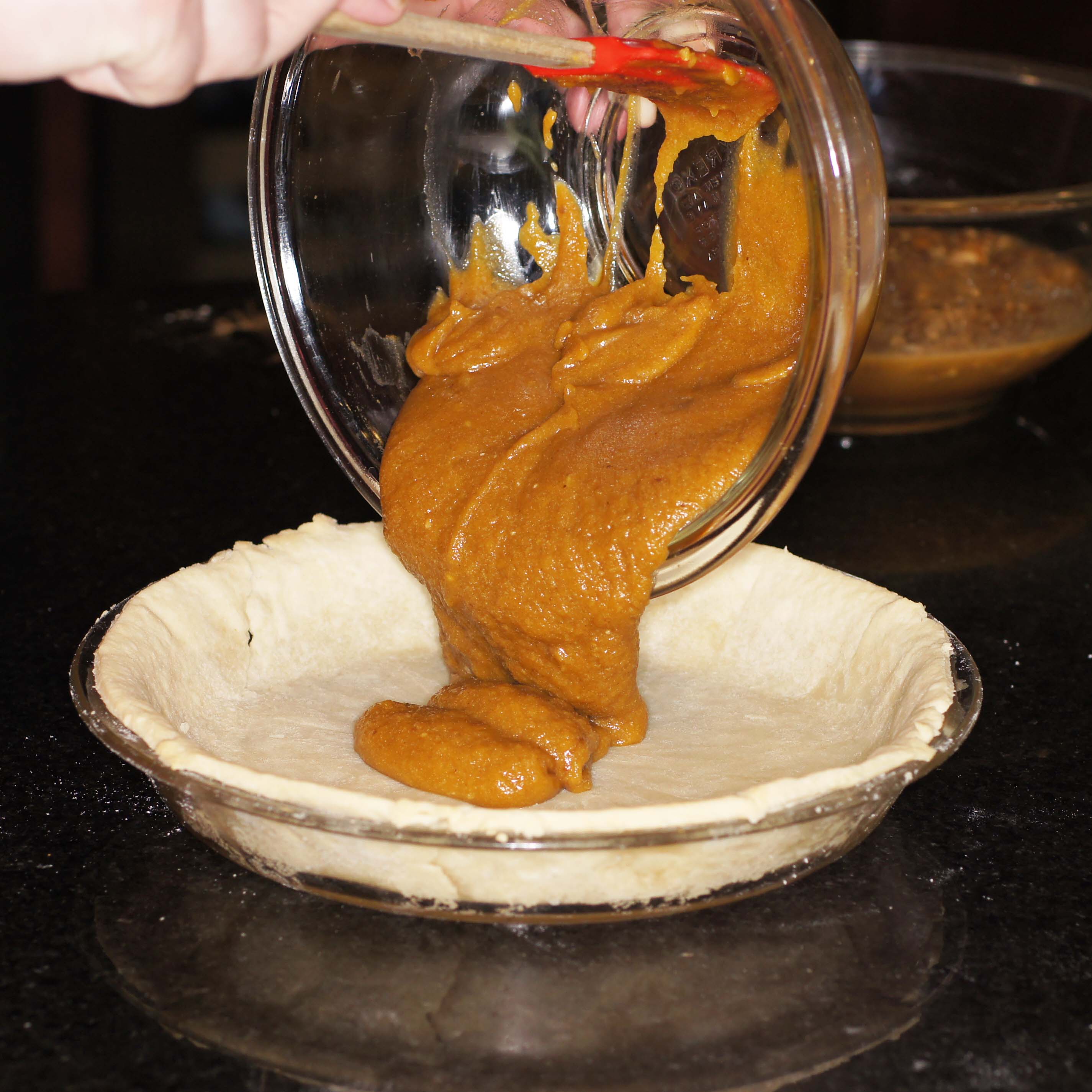 1. I love bourbon. I got the idea for this because of a bourbon pecan pie I buy in Portland, Me. from Two Fat Cats Bakery. It is incredible. I have loads of pumpkin puree and needed a pie for the Holidays. Ergo, this was it. 🙂 The bourbon really does take this over the top.