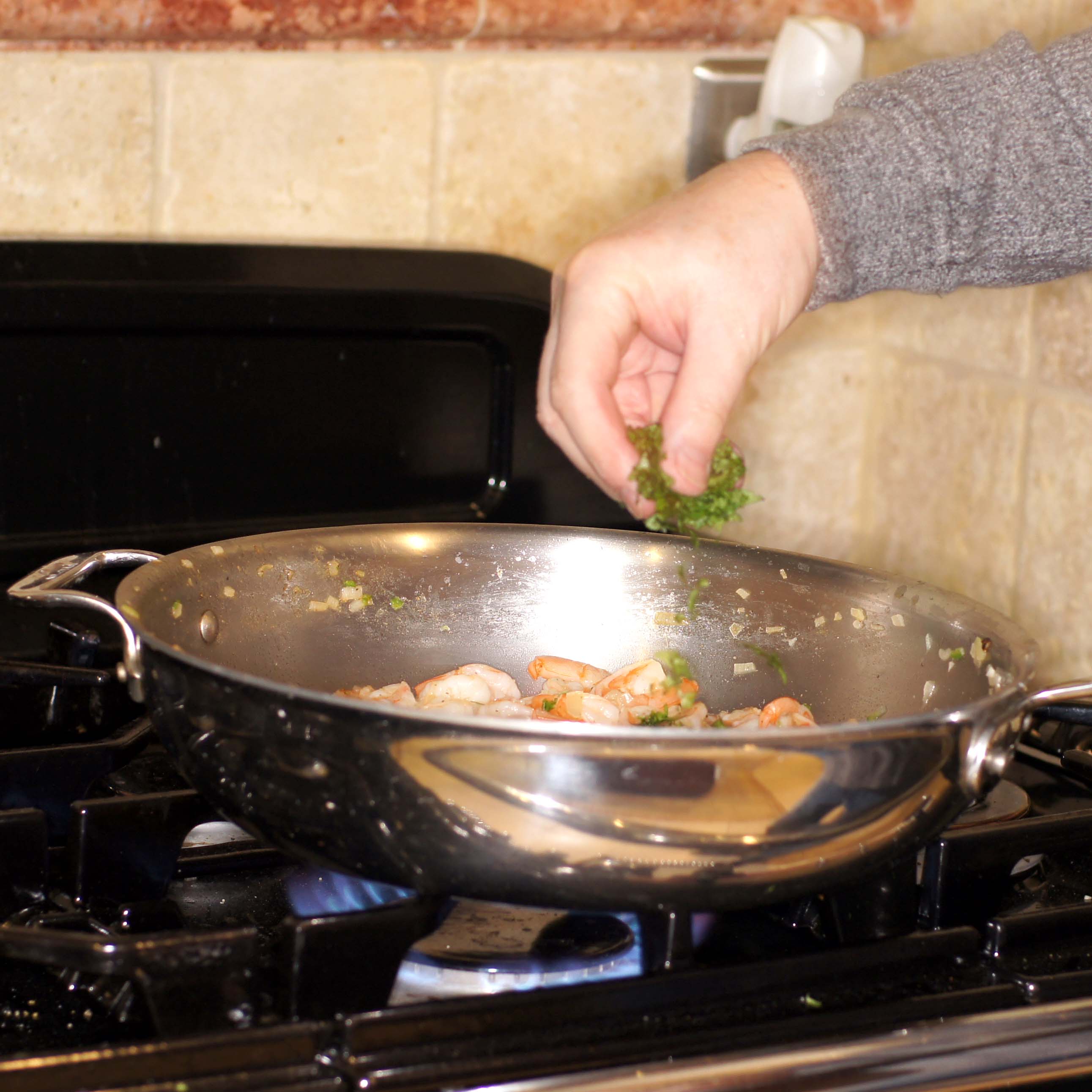 As you get older, less able to withstand the stupidity of your youth, and have learned new and safer ways to entertain yourself and others, tequila is reserved for dinner/cocktail parties typically in the form of a margarita. Some people, however, in the course of pickling their brains on tequila shots when younger acquire a taste for tequila. These people sip on their tequila (like I sip on fine bourbon and others with scotch) and describe its flavor profile in terms other than rocket fuel. You will hear descriptions like “initial spice or peppery taste that comes from the agave, then it explodes into an earthy, semi-sweet yet smooth taste;” or “very smooth with sweet cooked agave notes; slight vanilla and cinnamon.” Now, I don’t sip on tequila but I can differentiate between rot-gut, minimalist tequila (“mixto”) and a fine crafted tequila. There really is a discernible difference. So, while I’m not a big fan of drinking tequila, I have found that I like tequila in certain foods. For instance, you can use tequila “en papillote” for making a tasty margarita red snapper. You can use it in gelatin molds like grapefruit, mint and tequila gelatin salad. We like it a lot in Sorbete de Tuna Roja (Red Prickly Pear Sorbet) and Avocado-Lime Ice Cream. In all of these dishes the tequila pleasantly lies in the background providing accent flavors. This dish really brings the tequila to the forefront and showcases it along with the shrimp. Quite a tasty treat unless, of course, you don’t like tequila. If that’s the case then try one of our other recipes instead. 🙂 Also, this dish moves very quickly once you start so make sure you have everything out, pre-measured and easily accessible. If you don’t, it is very easy to overcook the shrimp. Now, this is what we did.