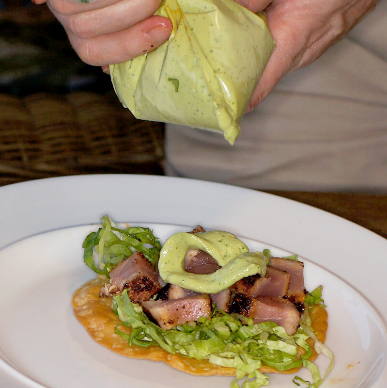1. Thanks, Stefan. This was the avocado cream we used on the tuna taco in the taco trio appetizer for you, Kees and Mimi. Glad to see you’re still enjoying the pleasures of chiles with tortillas thrown in for good measure. 🙂