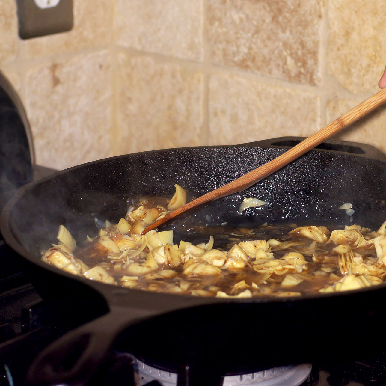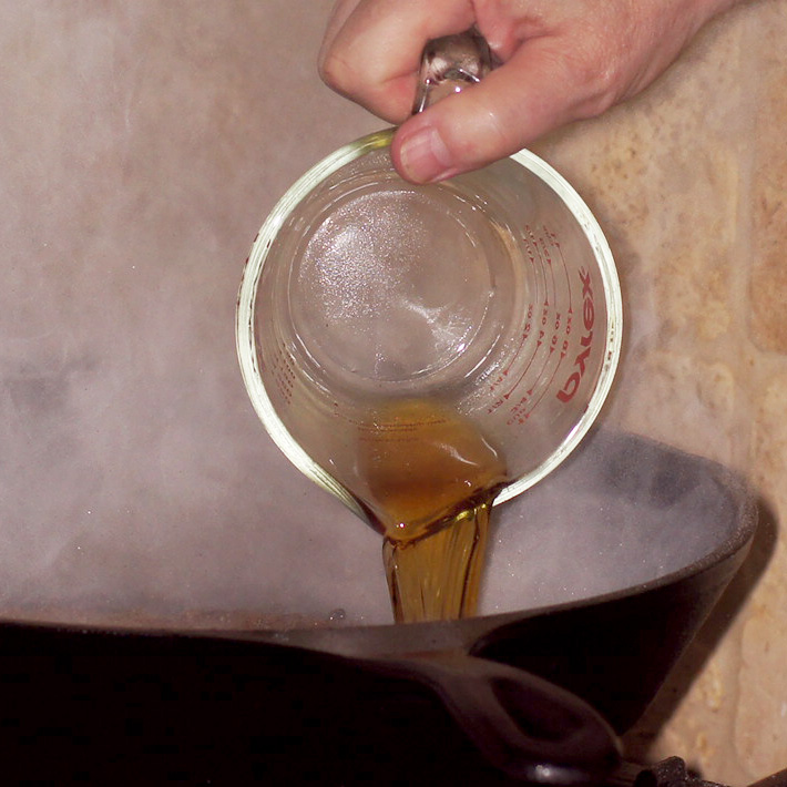 Now, add the sherry to the skillet and deglaze the skillet scraping up the sucs or fond.