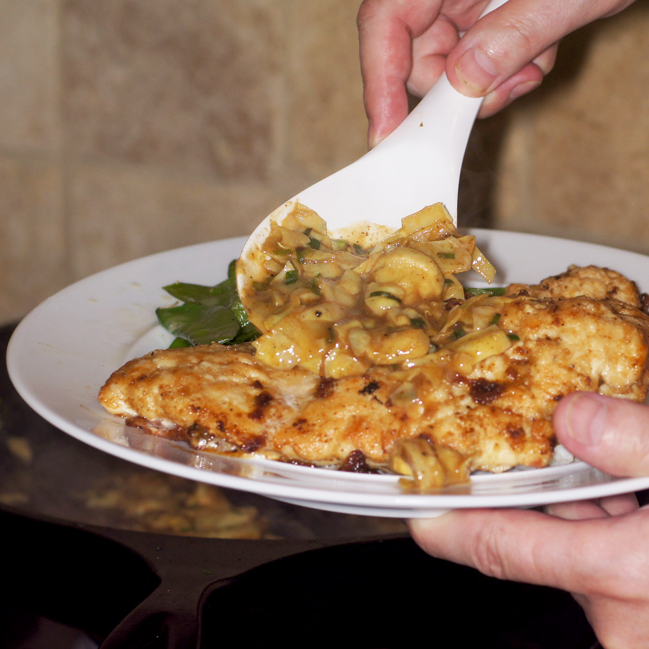 Sauté for another 2 minutes or until just cooked through. Remove them to a rack and place them in a preheated 200 F oven until ready to serve. Add another Tbsp of oil or so to the skillet and repeat the process with the remaining chicken until done.