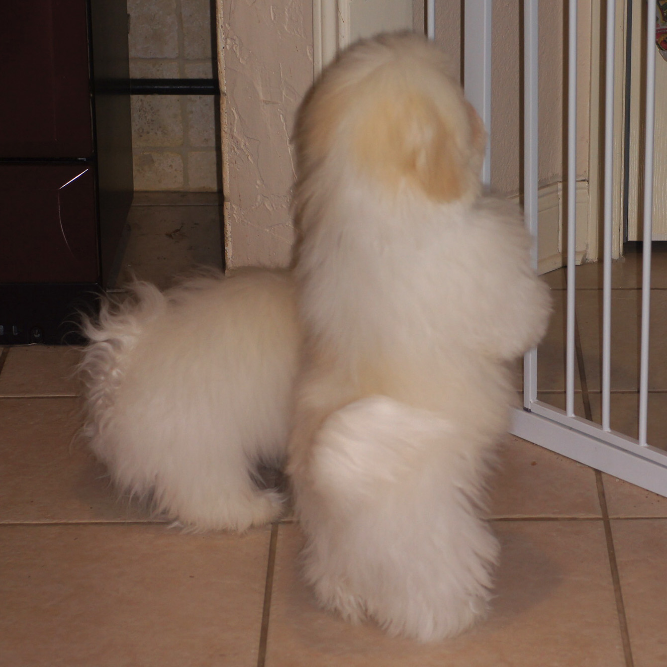 What started out as the acquisition of 1 family pet for Baby lady turned into 2. You see, Baby Lady has been asking me for a small dog for years. Having outlived many pets, I have politely refused. She is, however, persistent and I love her dearly. So, I eventually gave in. The question then became what type of dog to acquire? Baby Lady wanted a “tea cup” dog. Tea cup dogs, however, typically have lots of health problems. I was also worried we might step on it. 😮 I had always had large dogs, i.e. Weimaraner, Long Hair Collie, etc. (although I did have a Sheltie once). Baby Lady was adamant about no large dogs and we really don’t have the yard or open space for a large dog; so, we began looking at “small dogs.” After looking and researching about small dogs, we finally found the Coton de Tulear (pronounced KO-Tone Dih TOO-Lay-ARE).