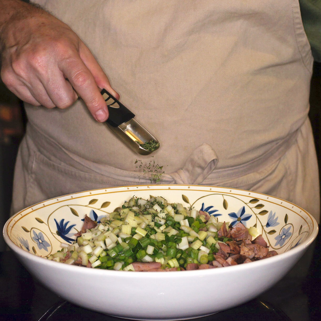Stir to incorporate. You don’t want the salad dry but you also don’t want it moist. As Goldilocks once said, you want it “just right.”