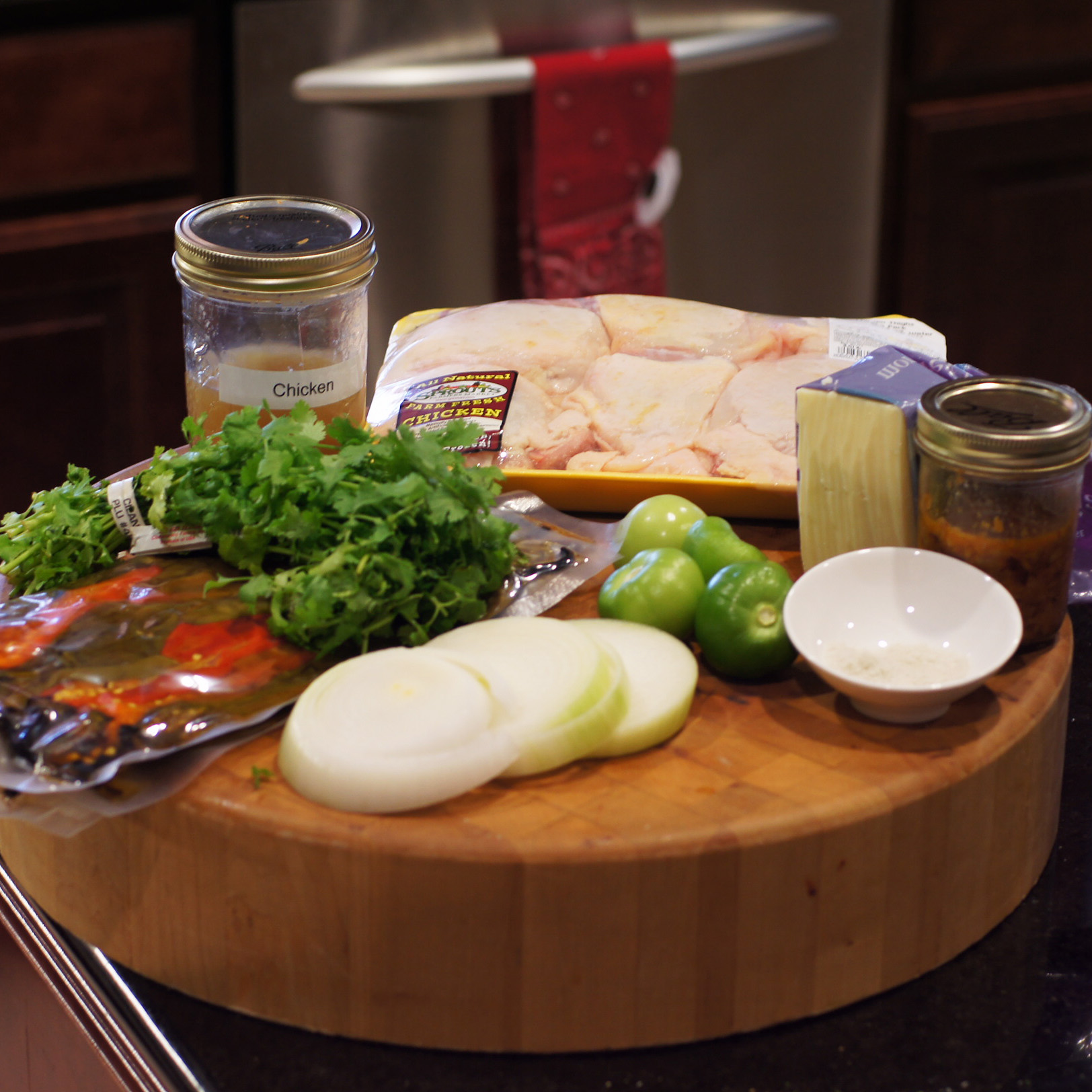 • 12 oz roasted green New Mexico chiles, peeled, stemmed and seeded (I buy 20+ lbs of New Mexico green chiles per year and roast them. They then get vacuum sealed and frozen. They last me about a year and freeze beautifully. It’s also a nice way to have chiles during the winter when it’s cold.