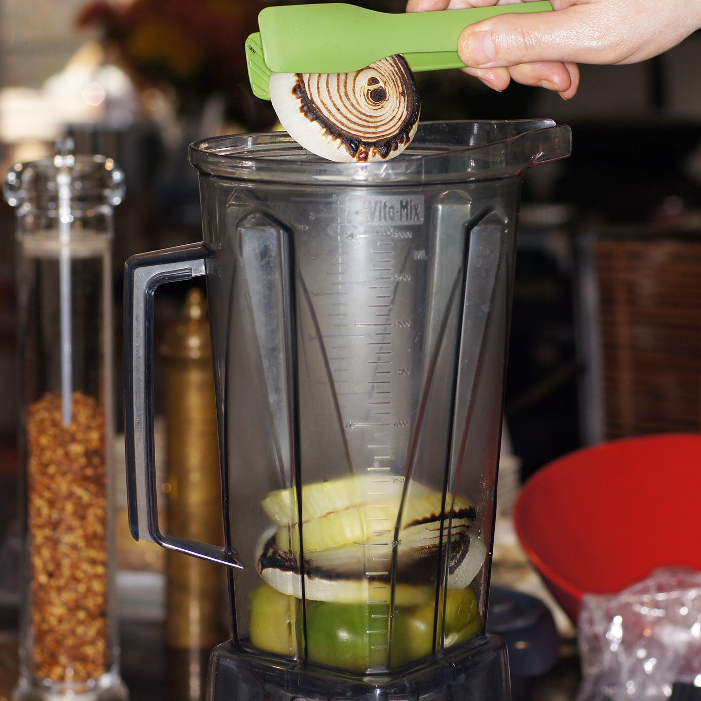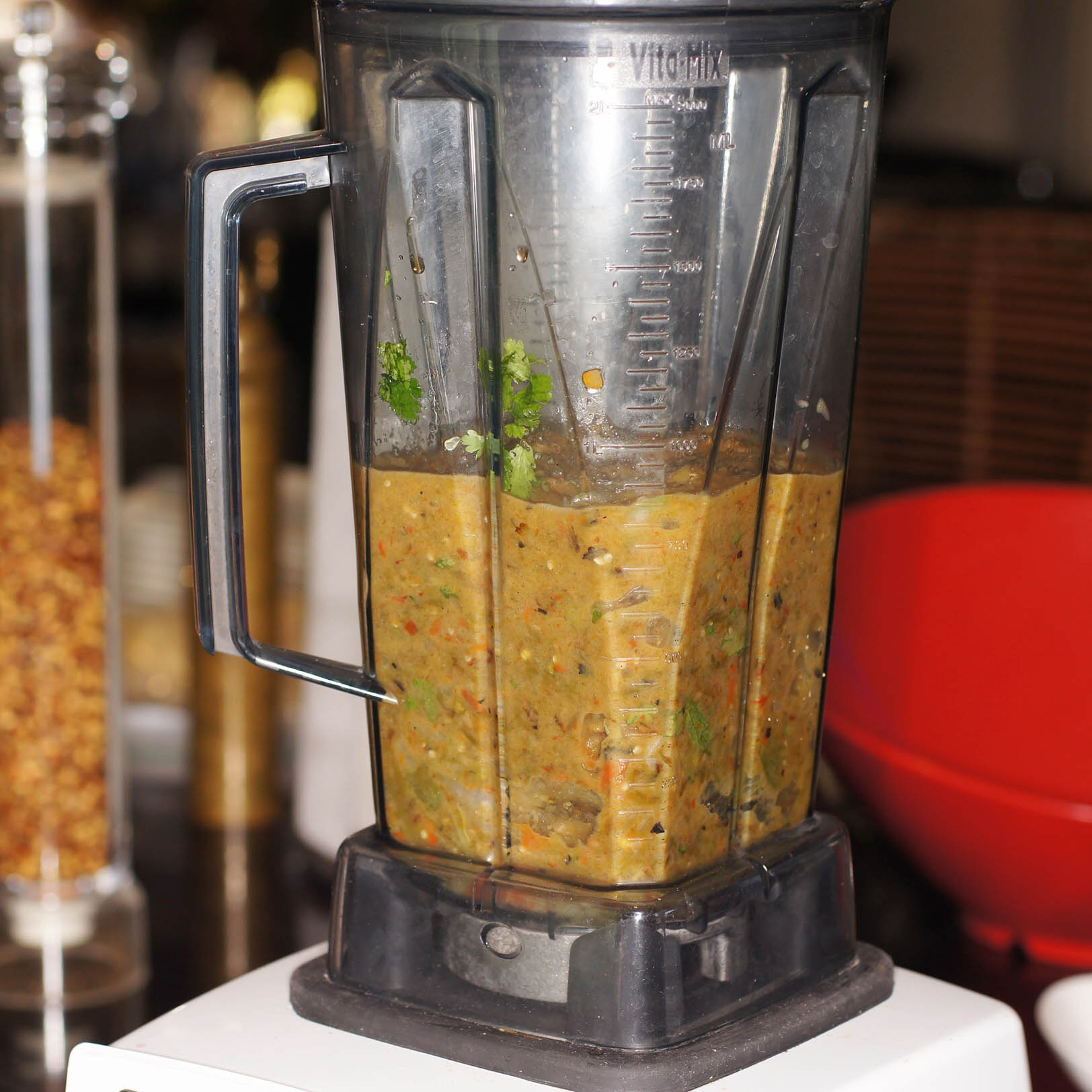 Once roasted put the veggies in the Vitamix or blender of your choice.