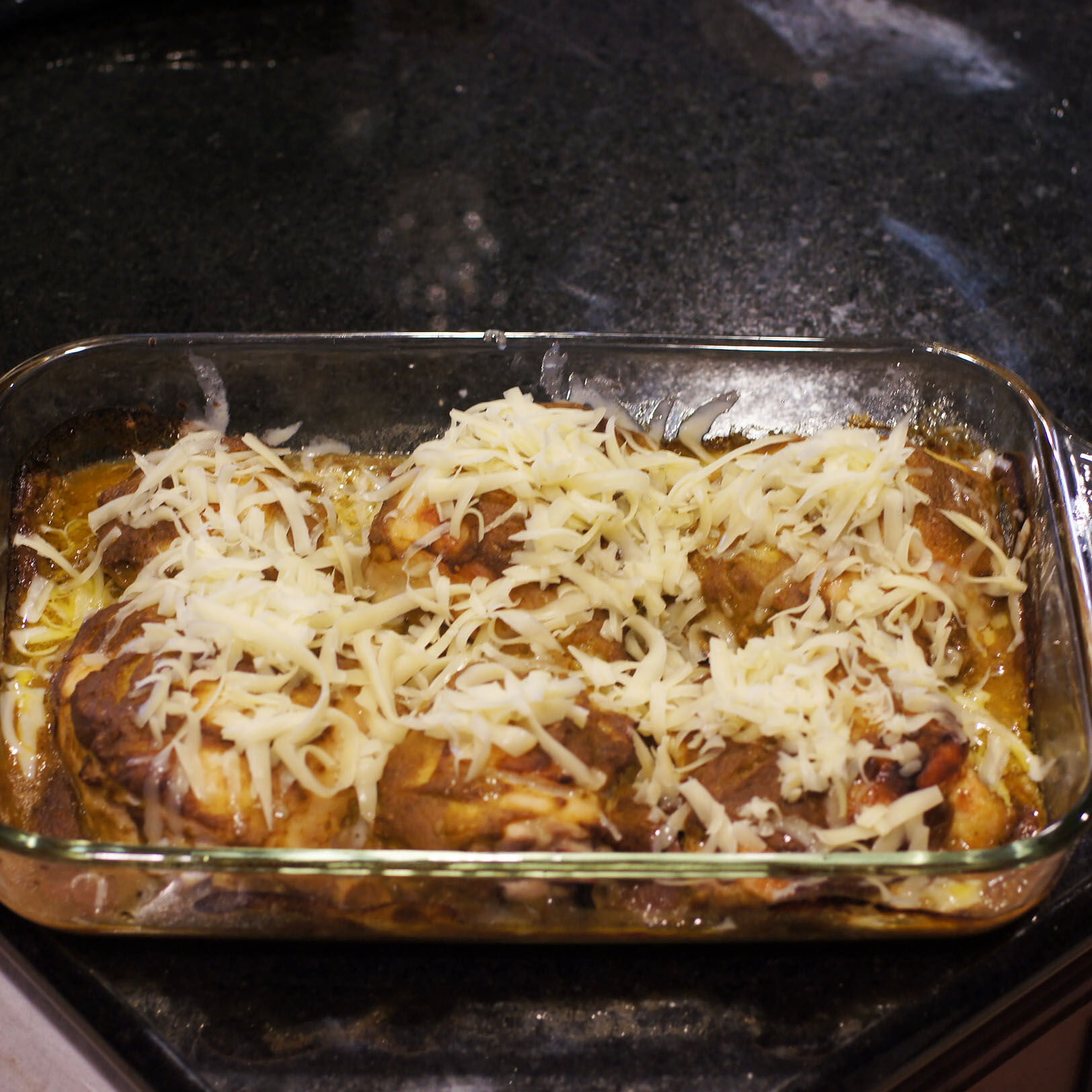 This recipe came about when Quickstep first came back. You see, Quickstep loves Tex-Mex/New Mexican/Mexican/Southwestern food. If it has chiles, he loves it. He loves carbs. He also loves casseroles. According to Quickstep, however, all casseroles had to have carbs, either rice, noodles, tortillas – some form of carbs. This probably flows from Quickstep being from the US. Typically, casseroles in the US consist of pieces of meat, various chopped vegetables, a starch and, a crunchy or cheesy topping. Casseroles, however, are really derivative of a dish, i.e. a large, deep dish used both in the oven and as a serving vessel. Casserole cooking is household convenience because the ingredients are cooked and served in the same dish. So, this was a dish to show Quickstep that not all casseroles have carbs. This is what we did.
