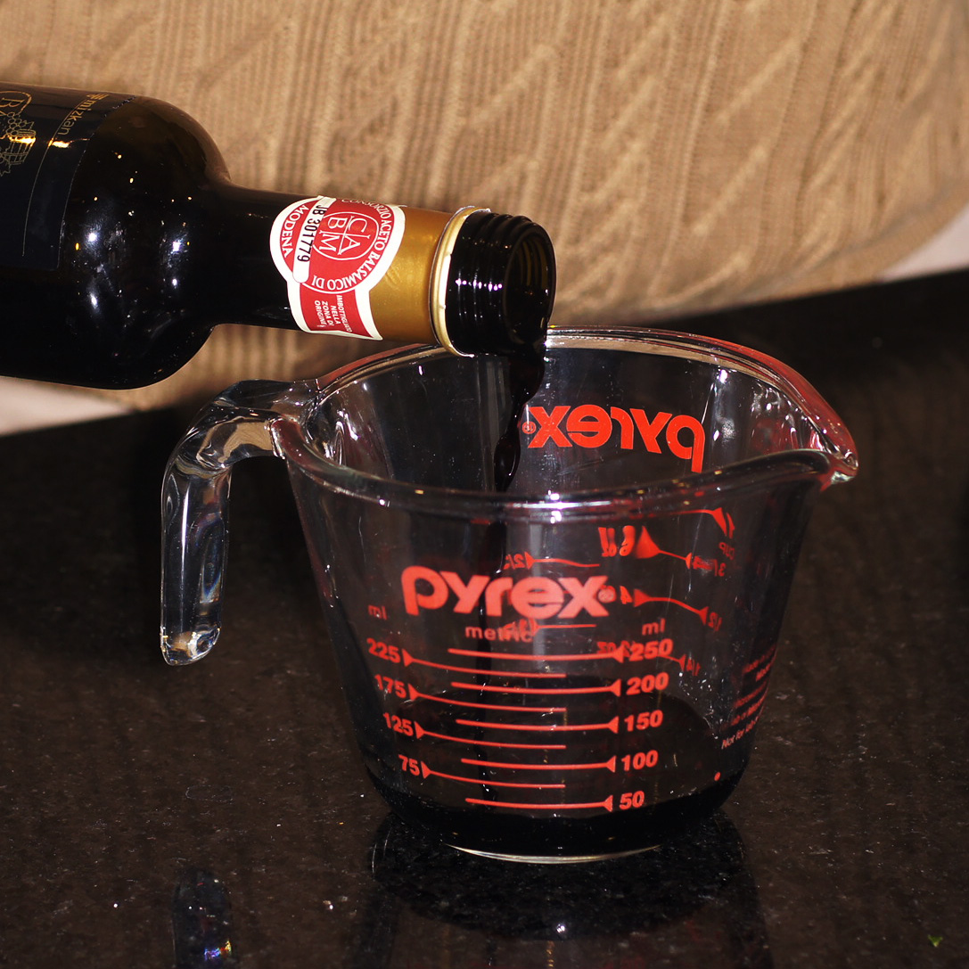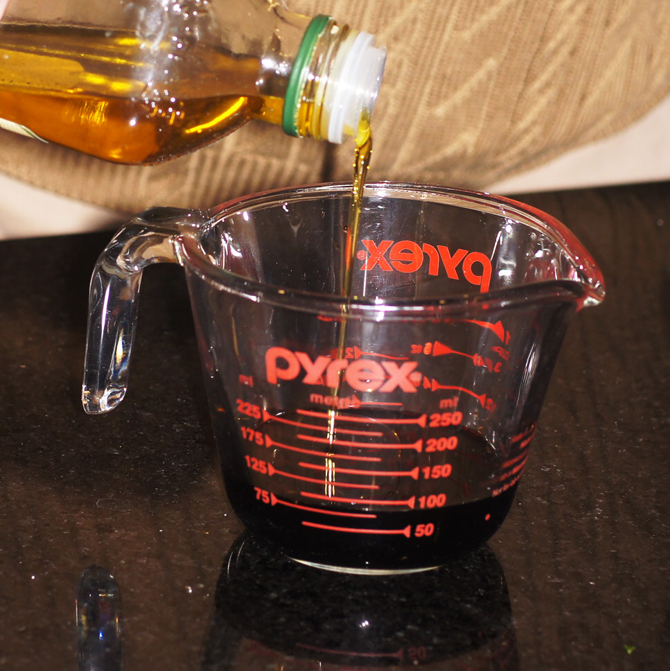 Now, add the oil and balsamic vinegar to the blender carafe.