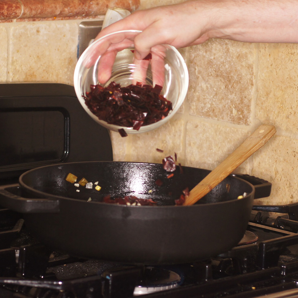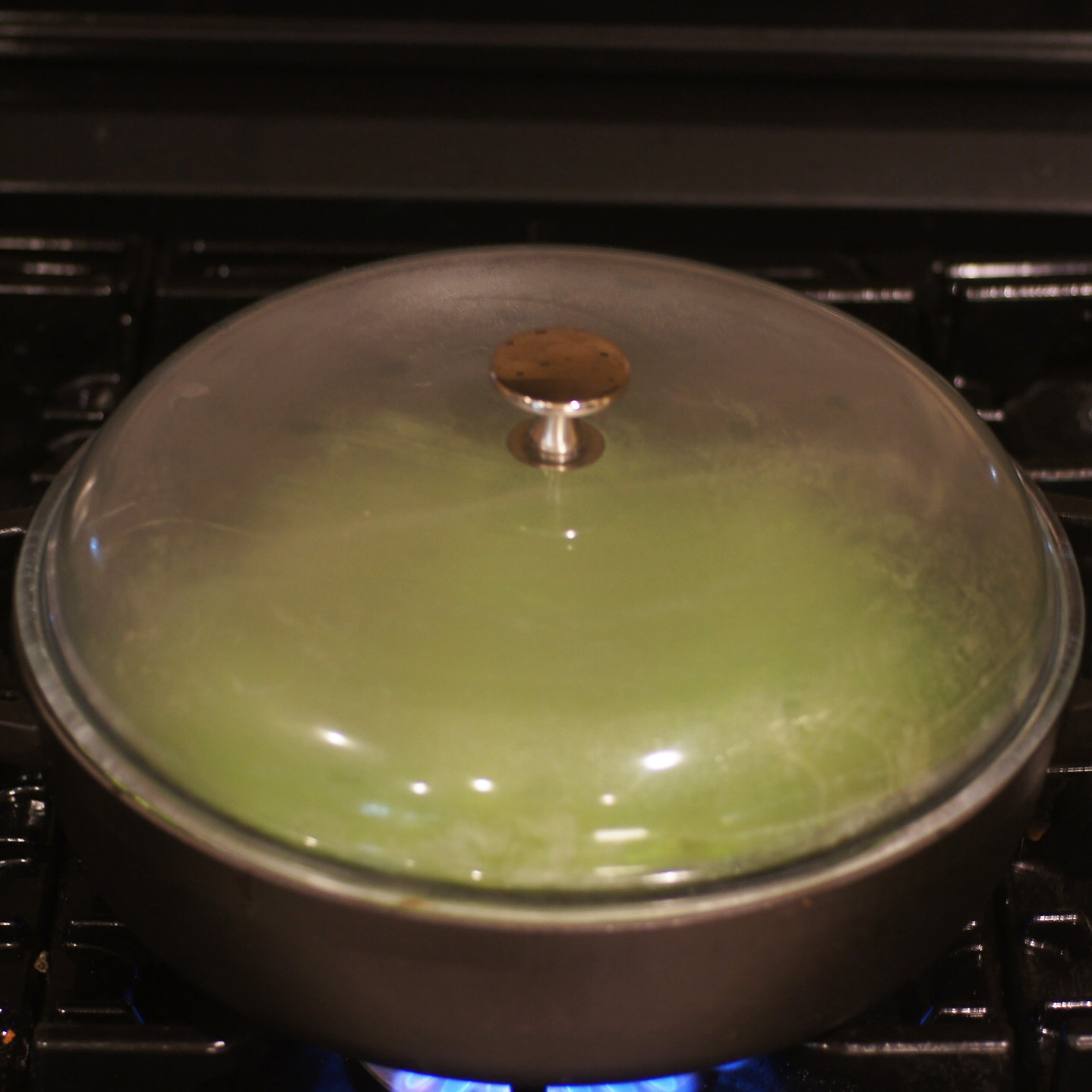 reduce the heat to medium and let the nopales cook and sweat for about 20 minutes, stirring once or twice. You will notice the nopales’ slimy liquid will have begun to dry out.