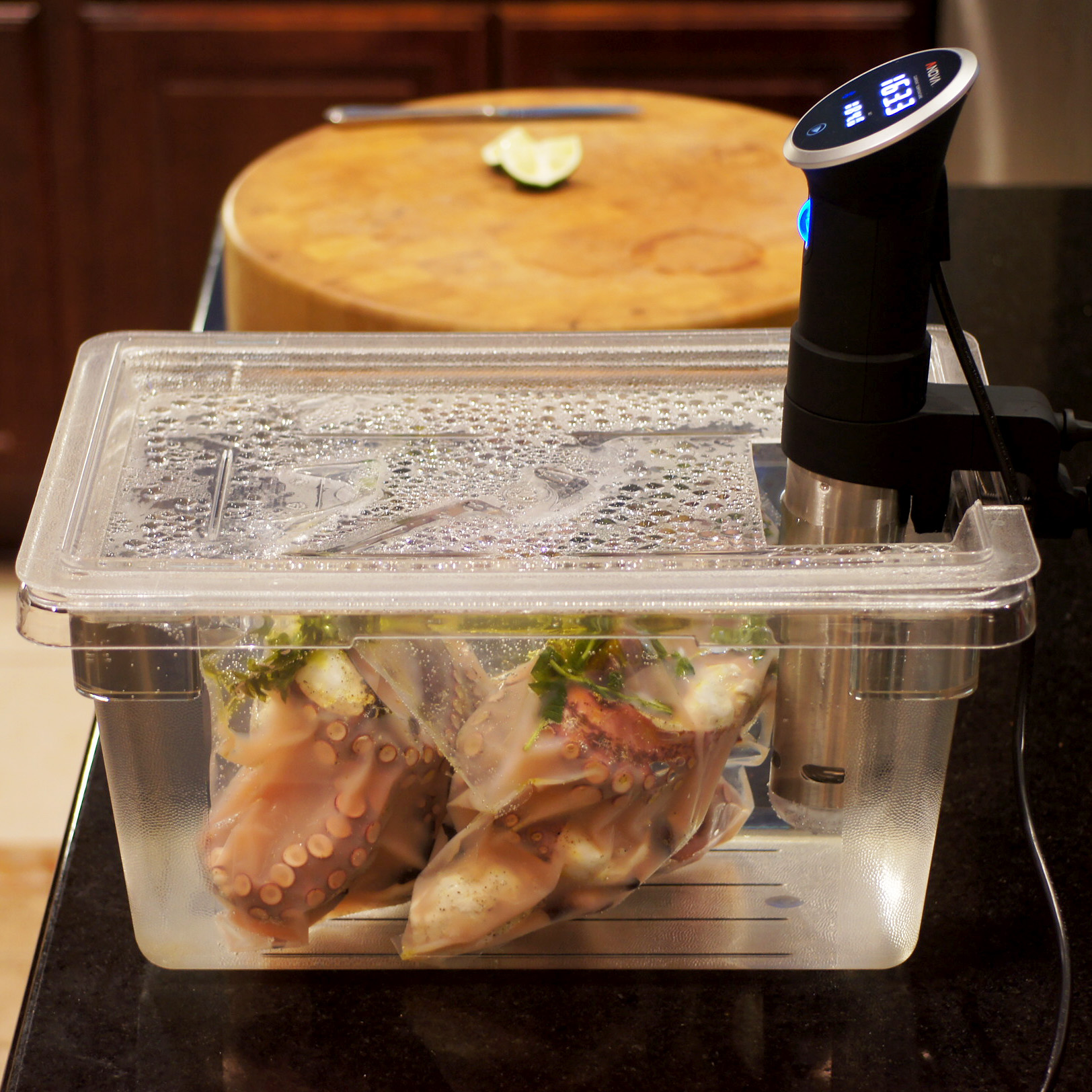 Sous Vide – The Good and Not So Good was my first foray into the modern,mysterious world of sous vide. Although the lemon curd turned out spectacular the octopus was a terrible disaster. Given Baby Lady & I seriously love grilled octopus (done right) I was seriously bummed out by the failure. Baby Lady, however, was very gracious in my ruining a meal she so looked forward to eating. I, on the other hand, was soooo bummed out it has taken me 3 years to do octopus sous vide again. Morally devastated would be a good description. I just don’t deal with kitchen failures well (or any other failure for that matter) and this was no different. Humiliated, embarrassed, and mocked by a peculiar piece of electrical equipment with a square flat black head, thermal couple, printed circuit board, rudimentary memory and silly little twirling upside down beanie to circulate the water. I had been bested by a not so smart machine!!!!