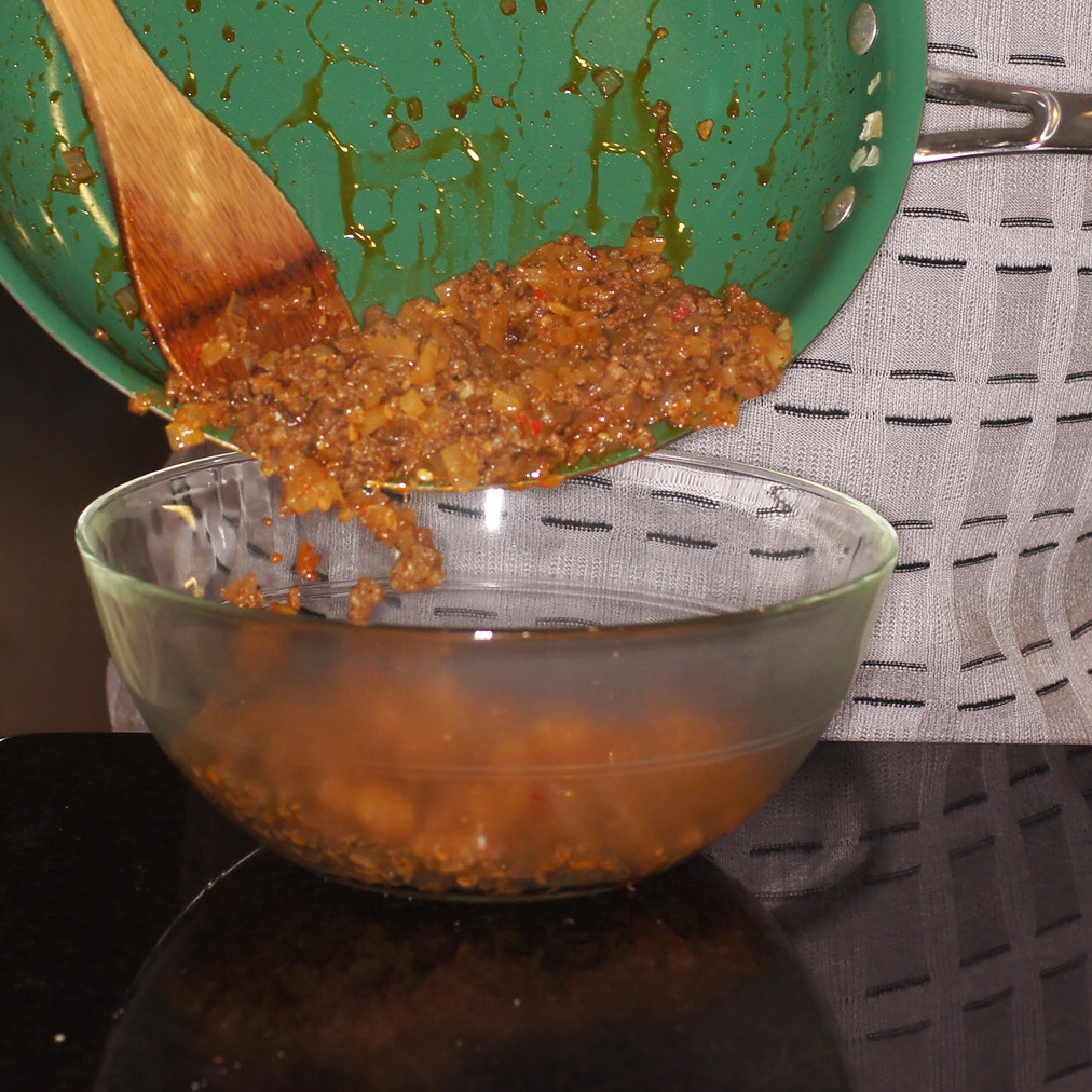 Cook the chorizo until it is cooked through, 5 to 6 minutes. Remove the pan from the heat and transfer to a mixing bowl.