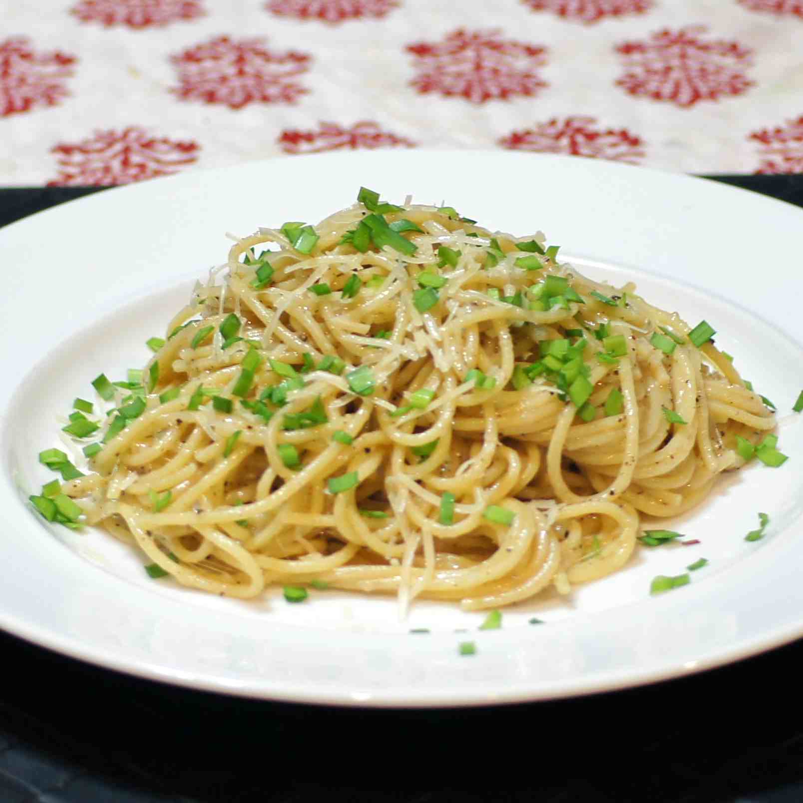 This is one of Baby Lady’s and my favorite pasta dishes. What’s there not to love about pasta, butter, cheese and black pepper? To make it even better, this dish is so fabulously simple. From start to finish (including brining the pasta water to a boil) you have this meal on the table in less than 30 minutes.