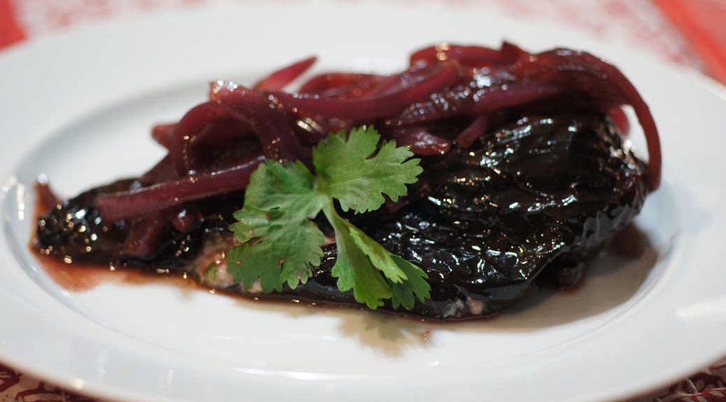 And now for something completely different…a dessert chile relleno. 😮 Yep, this thing of beauty is a Cinnamon Candied Ancho Chile Stuffed with Baby Lady’s Deliciously Simple and Healthy Chocolate Mouse floating on a cloud of Chantilly topped with Red Wine Chocolate Sauce and Candied Pecans. Now, I know some of you are going “You did what to dessert?” While others of you are going “Richard, you’ve lost your mind!” Still, some of you are intrigued. Regardless of the category into which you fall, this is a fabulous dessert and you should read on… Continue reading Cinnamon Candied Chile Relleno with Red Wine Chocolate Sauce→